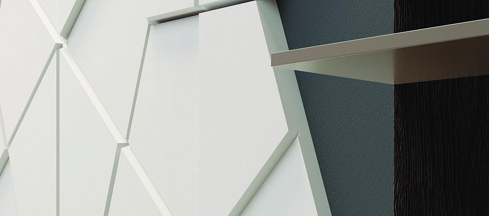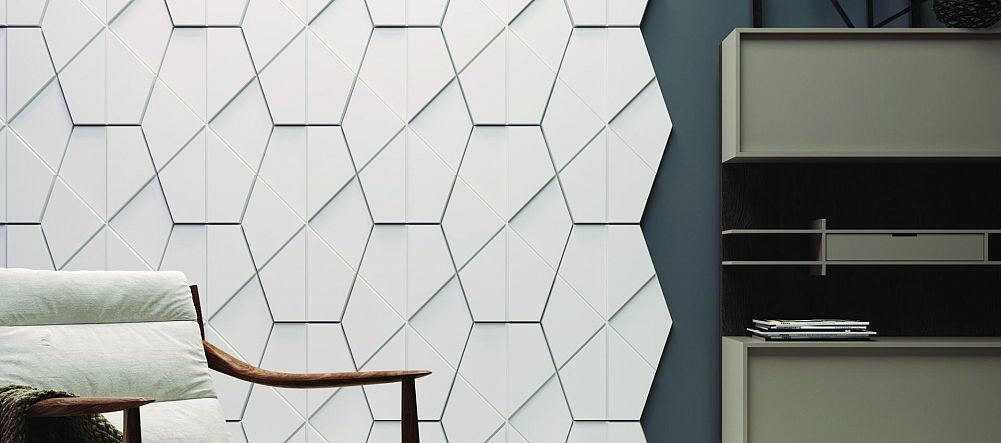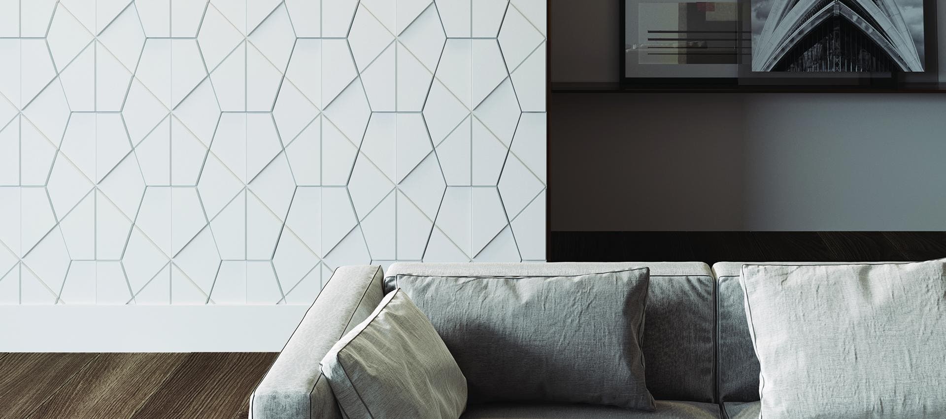 A linha Urbes é inspirada na tendência urbana e na tendência dos formatos hexagonais. Seus vincos marcantes proporcionam efeitos de luz e sombra, sendo indicada para paredes de áreas internas como sala de estar ou jantar.